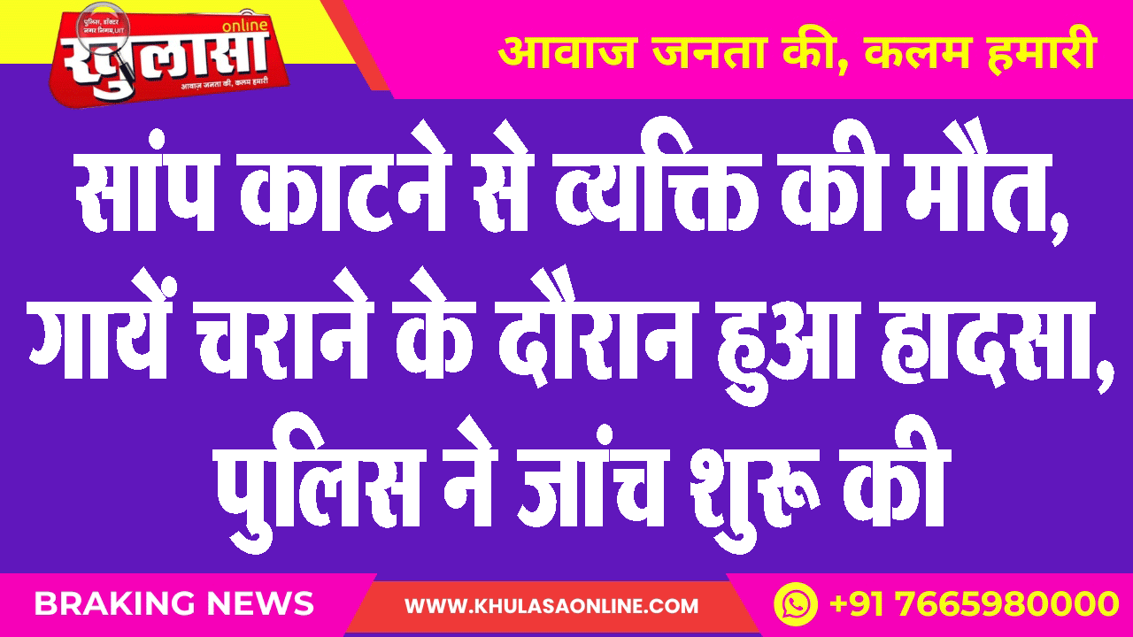 सांप काटने से व्यक्ति की मौत,गायें चराने के दौरान हुआ हादसा, पुलिस ने जांच शुरू की