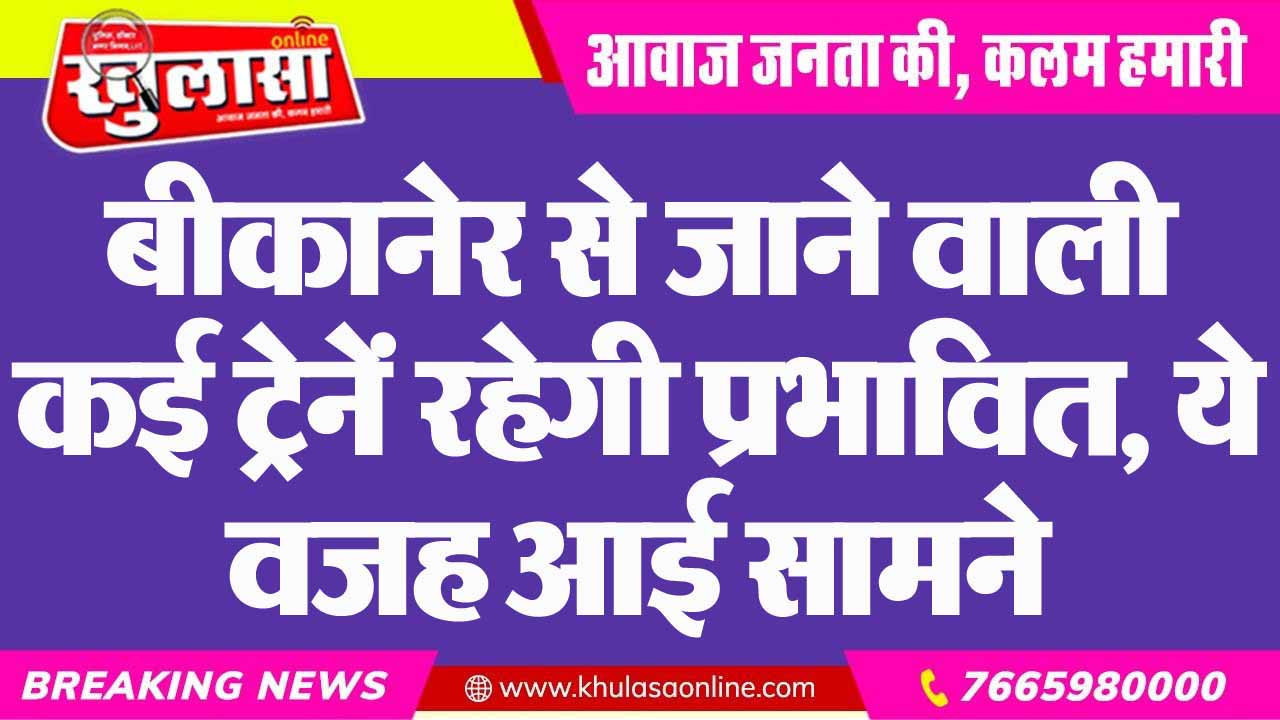 बीकानेर से जाने वाली कई ट्रेनें रहेगी प्रभावित, ये वजह आई सामने