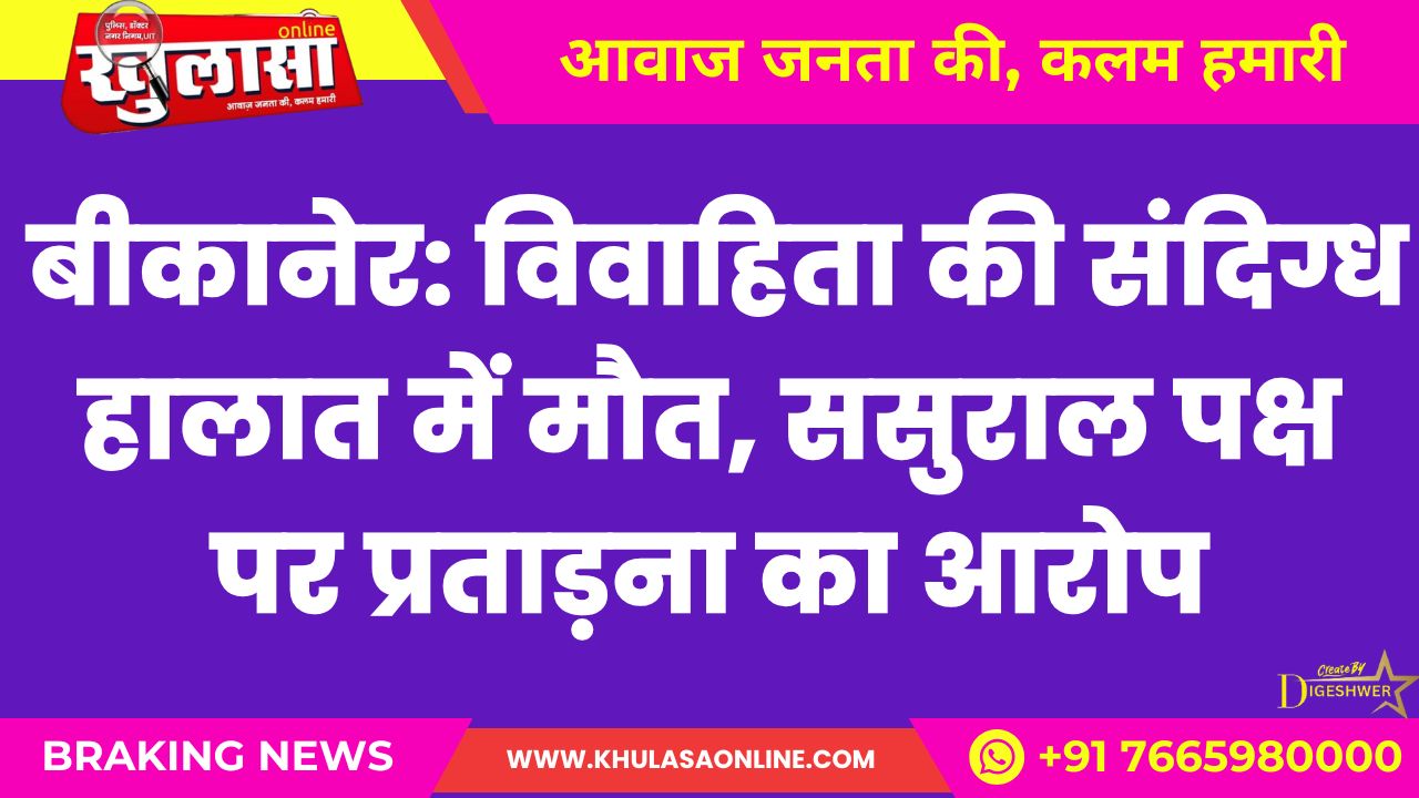 बीकानेर: विवाहिता की संदिग्ध हालात में मौत, ससुराल पक्ष पर प्रताड़ना का आरोप