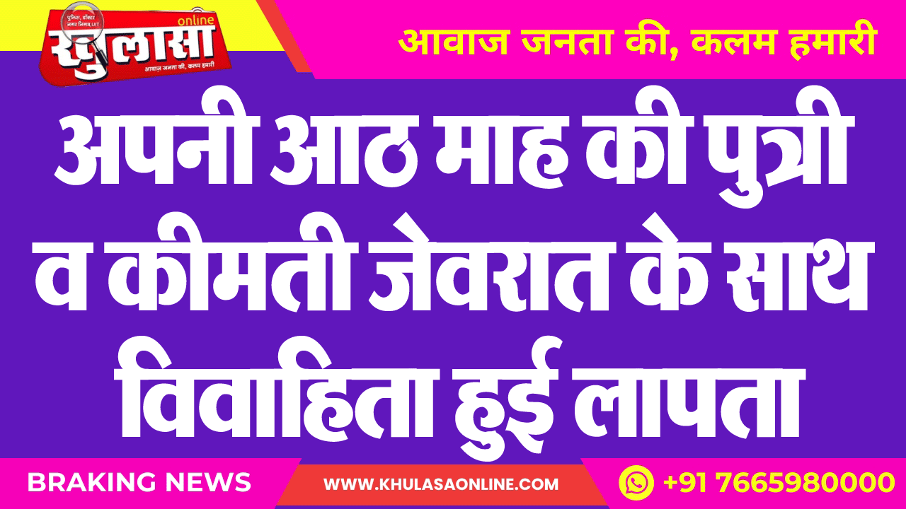 अपनी आठ माह की पुत्री व कीमती जेवरात के साथ विवाहिता हुई लापता