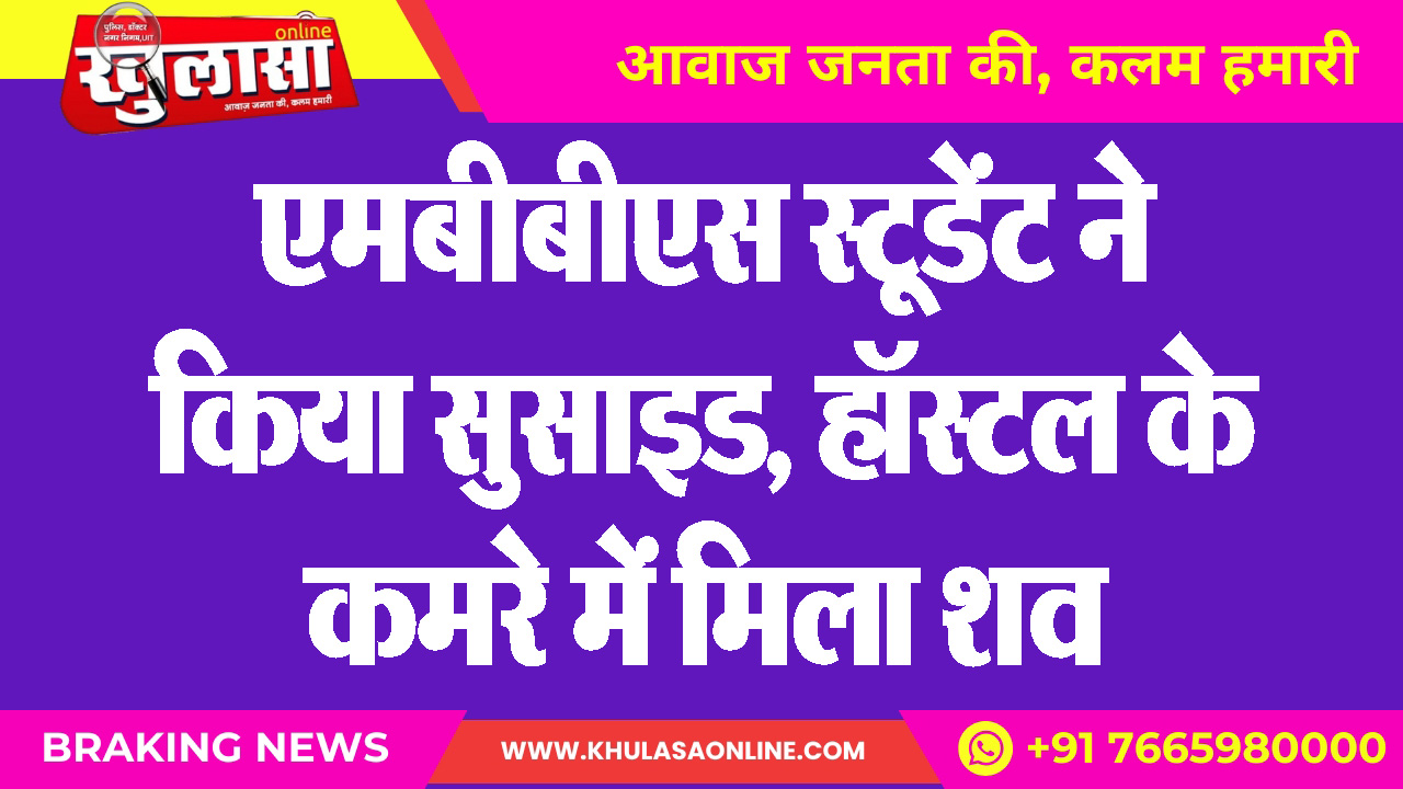 एमबीबीएस स्टूडेंट ने किया सुसाइड, हॉस्टल के कमरे में मिला शव