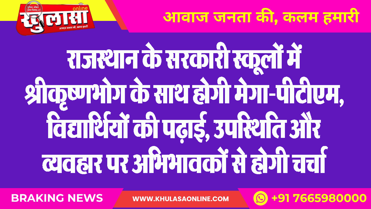 राजस्थान के सरकारी स्कूलों में श्रीकृष्णभोग के साथ होगी मेगा-पीटीएम, विद्यार्थियों की पढ़ाई, उपस्थिति और व्यवहार पर अभिभावकों से होगी चर्चा
