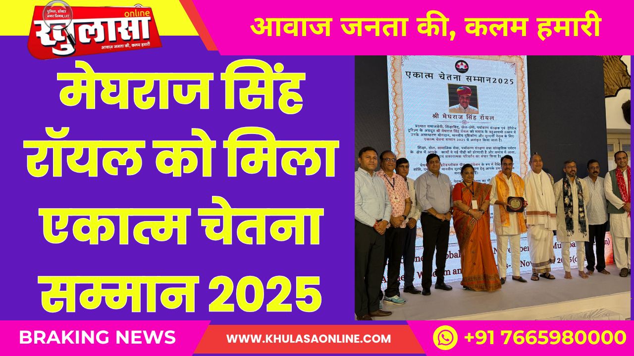 ‘एकात्म चेतना सम्मान 2025’ से सम्मानित मेघराज सिंह रॉयल ने अपने विज़न और कार्यों से यह साबित किया कि सेवा, नीति और नवाचार से भारत पुनः विश्वगुरु बनने की दिशा में अग्रसर है।