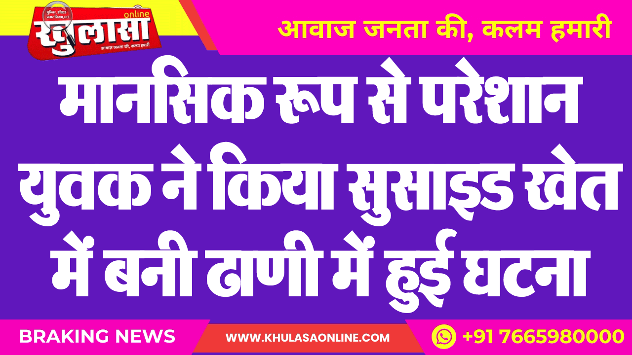 मानसिक रूप से परेशान युवक ने किया सुसाइडखेत में बनी ढाणी में हुई घटना