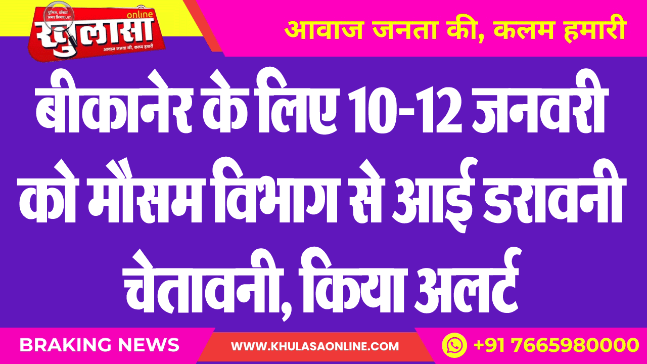 बीकानेर के लिए 10-12 जनवरी को मौसम विभाग से आई डरावनी चेतावनी, किया अलर्ट