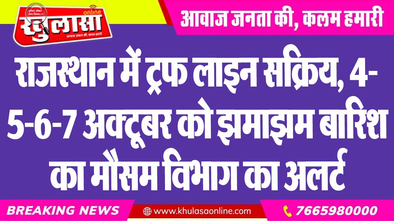 राजस्थान में ट्रफ लाइन सक्रिय, 4-5-6-7 अक्टूबर को झमाझम बारिश का मौसम विभाग का अलर्ट