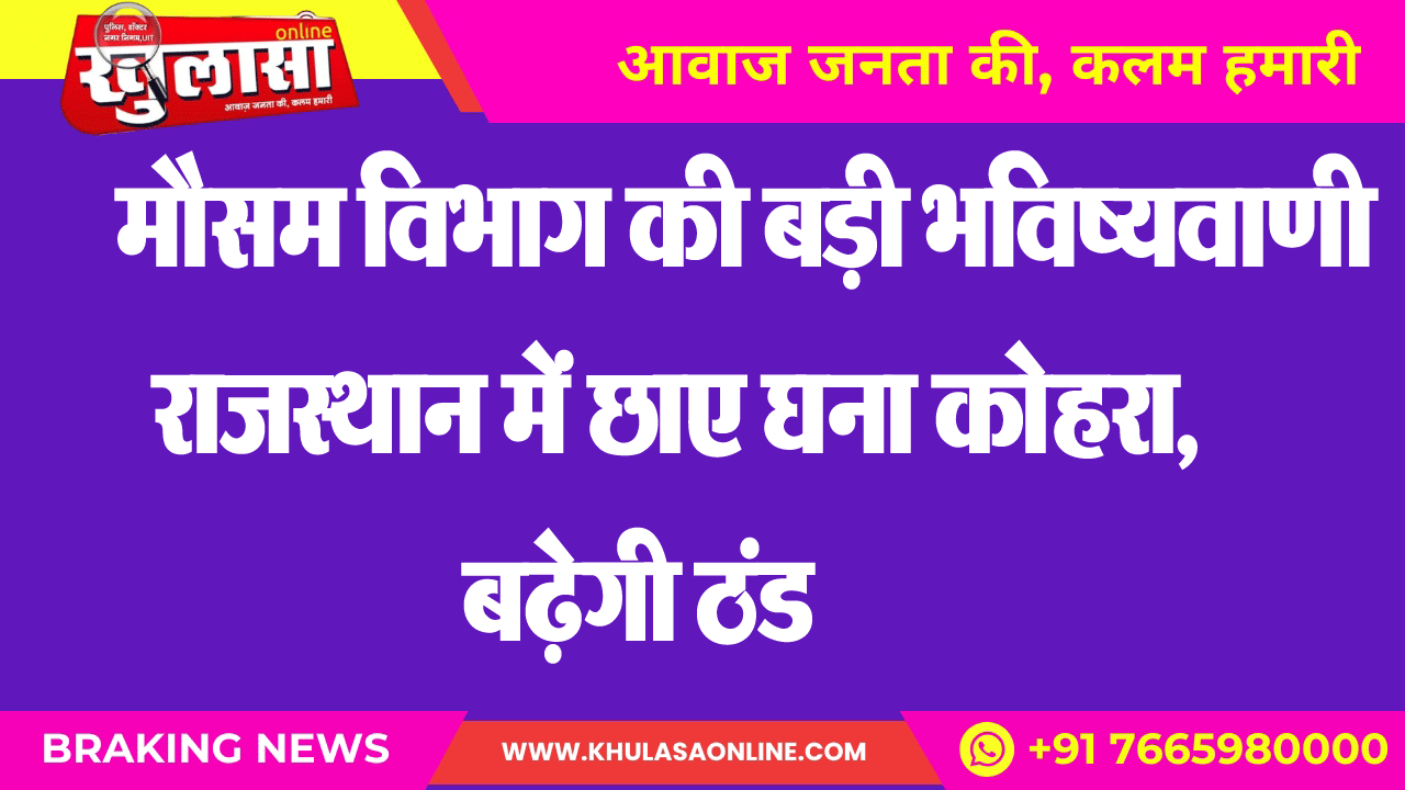 मौसम विभाग की बड़ी भविष्यवाणी राजस्थान में छाए घना कोहरा, बढ़ेगी ठंढ