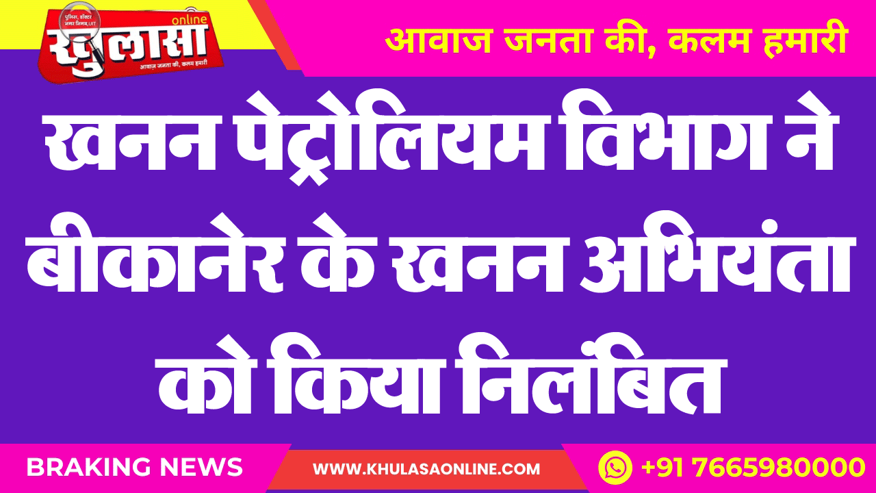 खनन पेट्रोलियम विभाग ने बीकानेर के खनन अभियंता को किया निलंबित