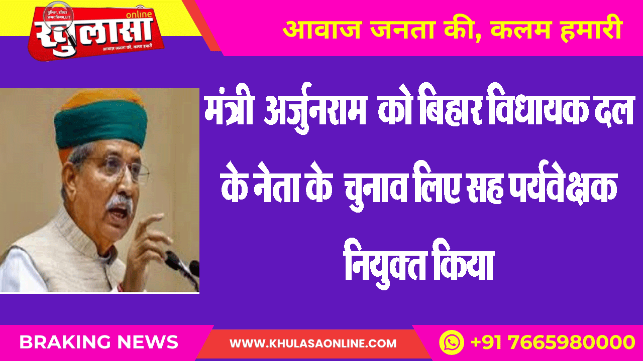 मंत्री अर्जुनराम को बिहार विधायक दल के नेता के चुनाव लिए सह पर्यवेक्षक नियुक्त किया