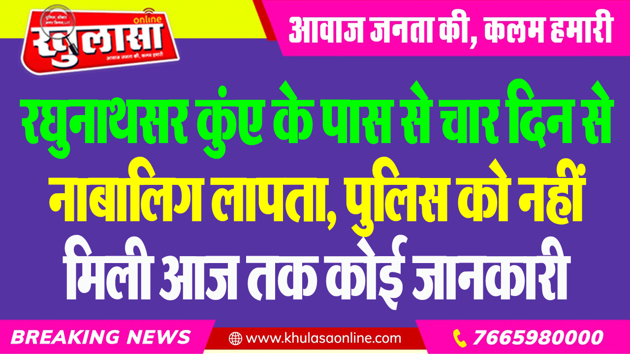रघुनाथसर कुंए के पास से चार दिन से नाबालिग लापता, पुलिस को नहीं मिली आज तक कोई जानकारी