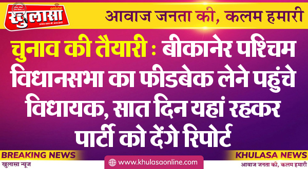 चुनाव की तैयारी : बीकानेर पश्चिम विधानसभा का फीडबेक लेने पहुंचे विधायक, सात दिन यहां रहकर पार्टी को देंगे रिपोर्ट