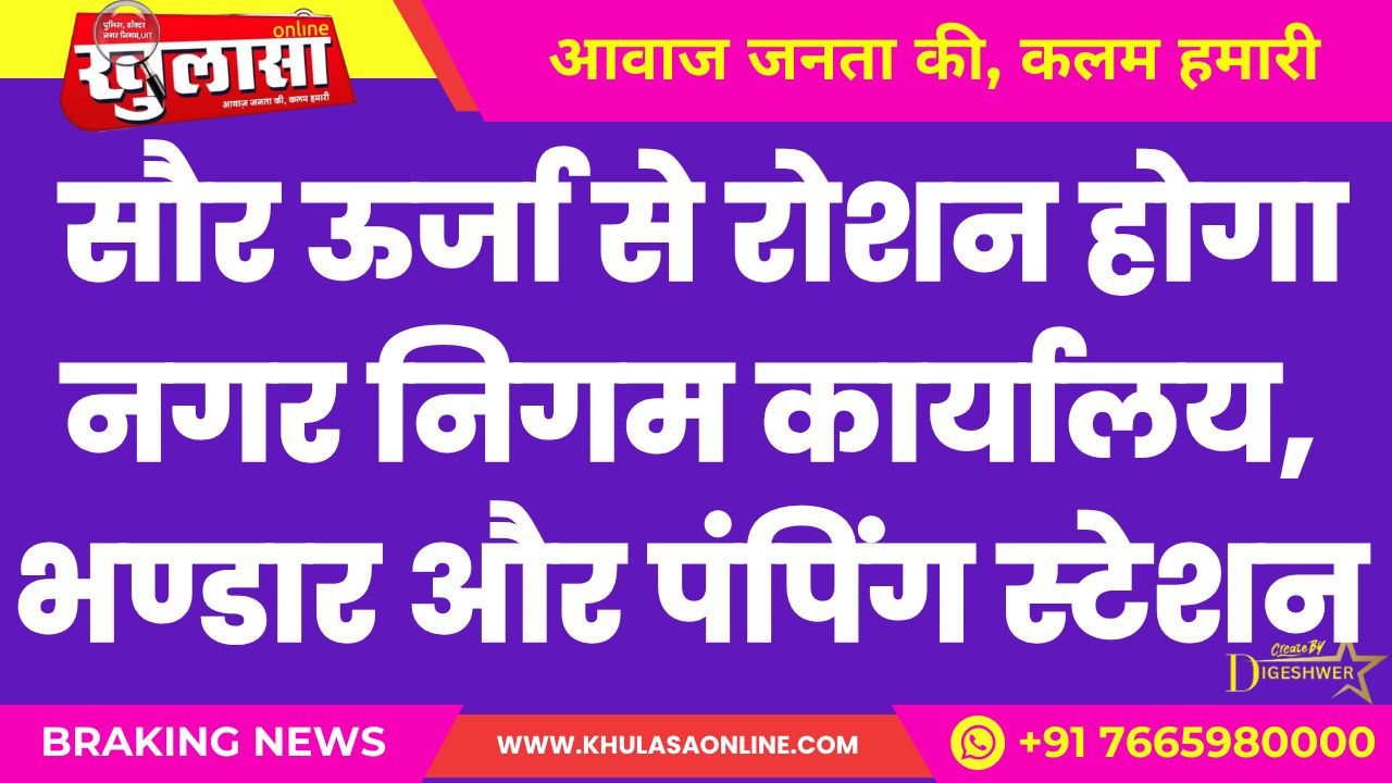 बीकानेर: सौर ऊर्जा से रोशन होगा नगर निगम कार्यालय, भण्डार और पंपिंग स्टेशन