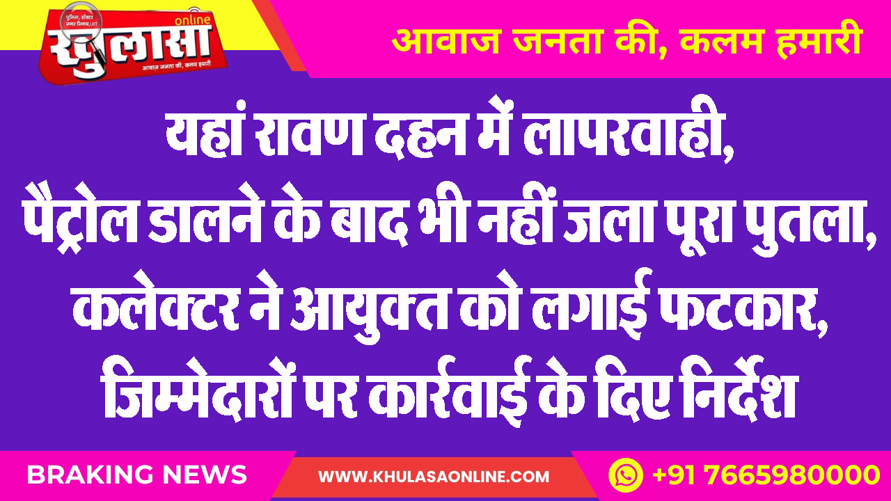 यहां रावण दहन में लापरवाही, पैट्रोल डालने के बाद भी नहीं जला पूरा पुतला, कलेक्टर ने आयुक्त को लगाई फटकार, जिम्मेदारों पर कार्रवाई के दिए निर्देश