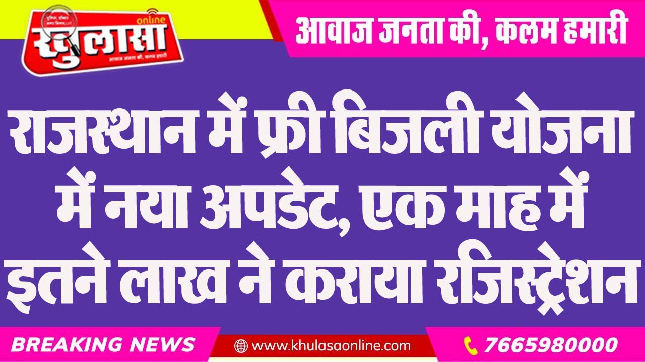 राजस्थान में फ्री बिजली योजना में नया अपडेट, एक माह में इतने लाख ने कराया रजिस्ट्रेशन