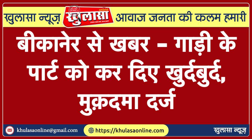 बीकानेर से खबर – गाड़ी के पार्ट को कर दिए खुर्दबुर्द, मुक़दमा दर्ज