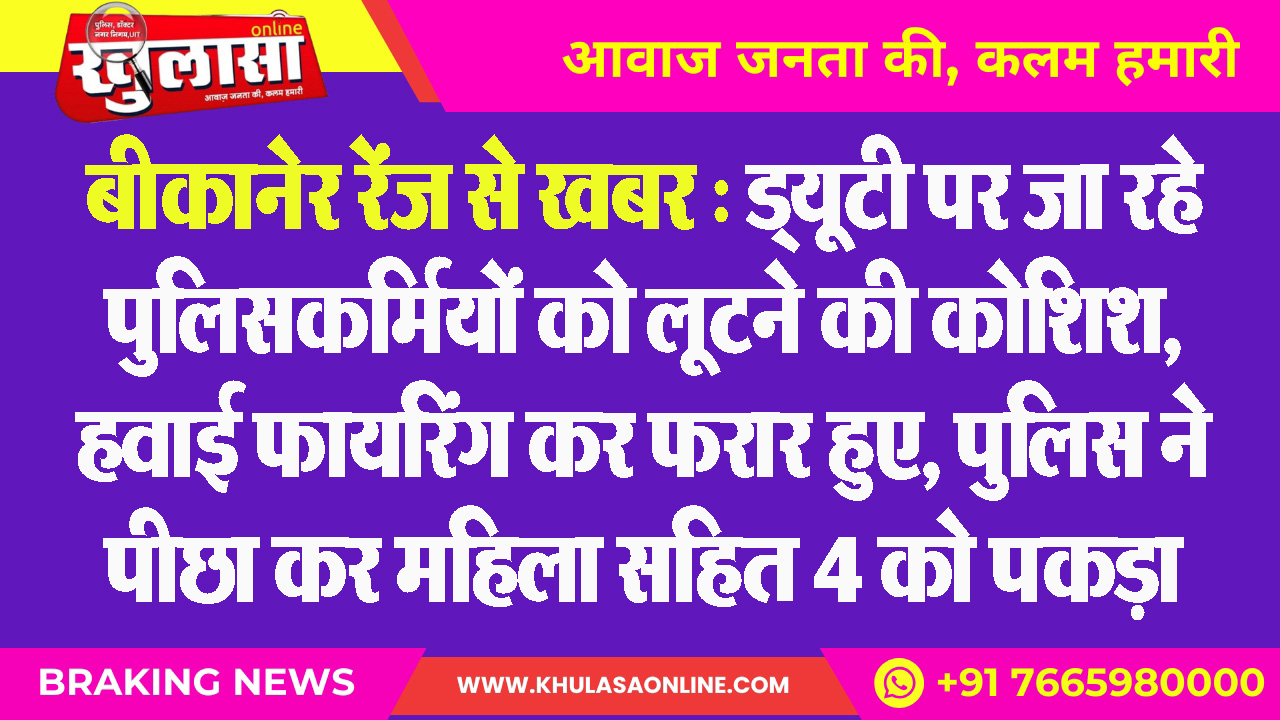 बीकानेर रेंज से खबर : ड्यूटी पर जा रहे पुलिसकर्मियों को लूटने की कोशिश, हवाई फायरिंग कर फरार हुए, पुलिस ने पीछा कर महिला सहित 4 को पकड़ा