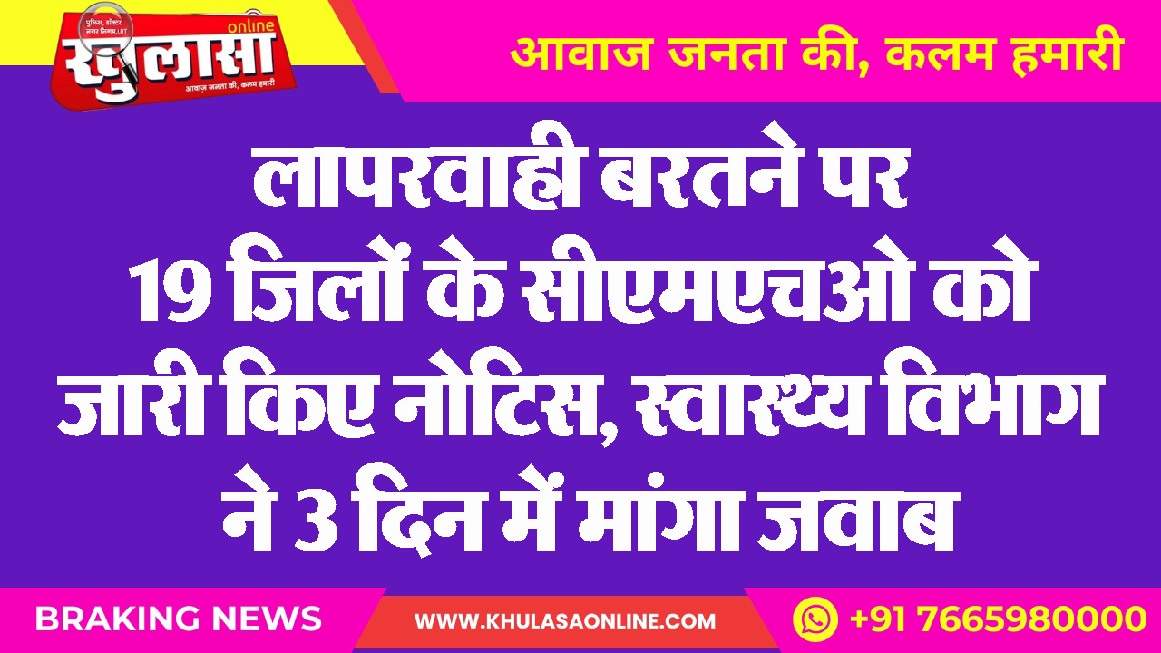लापरवाही बरतने पर 19 जिलों के सीएमएचओ को जारी किए नोटिस, स्वास्थ्य विभाग ने 3 दिन में मांगा जवाब