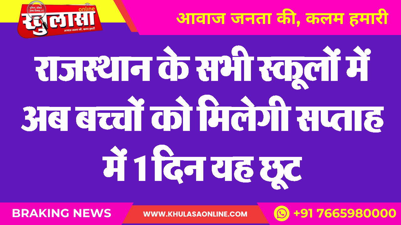 राजस्थान के सभी स्कूलों में अब बच्चों को मिलेगी सप्ताह में 1 दिन यह छूट