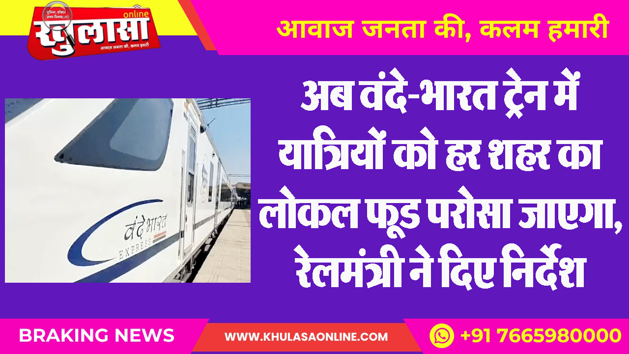 अब वंदे-भारत ट्रेन में यात्रियों को हर शहर का लोकल फूड परोसा जाएगा, रेलमंत्री ने दिए निर्देश