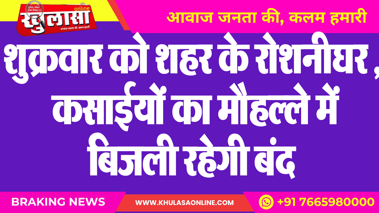 शुक्रवार को शहर के रोशनीघर , कसाईयों का मौहल्ले में बिजली रहेगी बंद