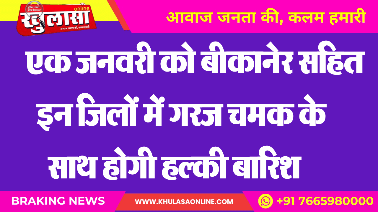 एक जनवरी को बीकानेर सहित इन जिलों में गरज चमक के साथ होगी हल्की बारिश