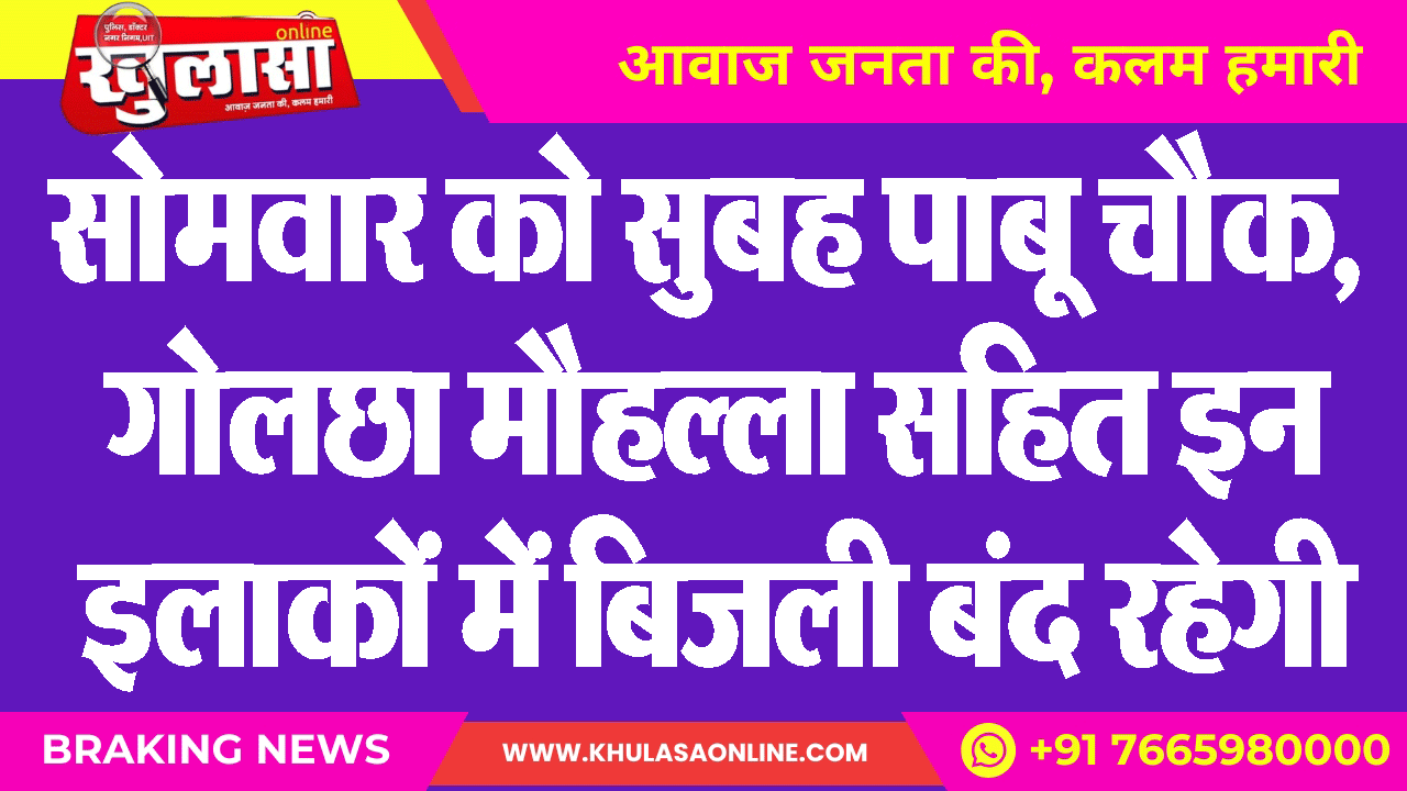 सोमवार को सुबह पाबू चौक, गोलछा मौहल्ला सहित इन इलाकों में बिजली बंद रहेगी