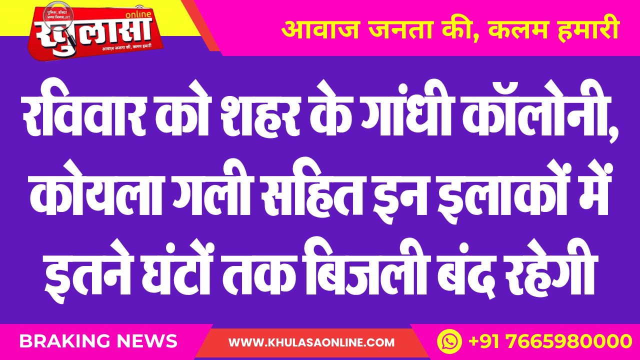रविवार को शहर के गांधी कॉलोनी, कोयला गली सहित इन इलाकों में इतने घंटों तक बिजली बंद रहेगी
