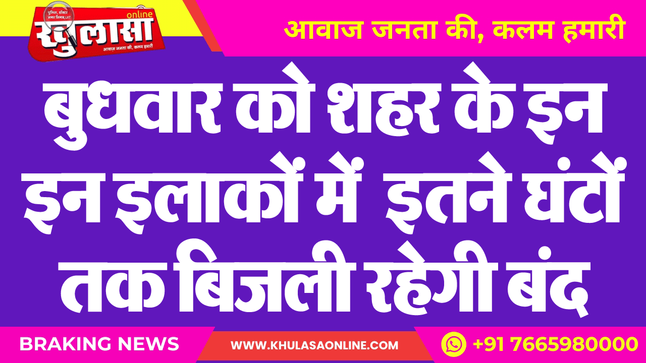 बुधवार को शहर के इन इन इलाकों में इतने घंटों तक बिजली रहेगी बंद