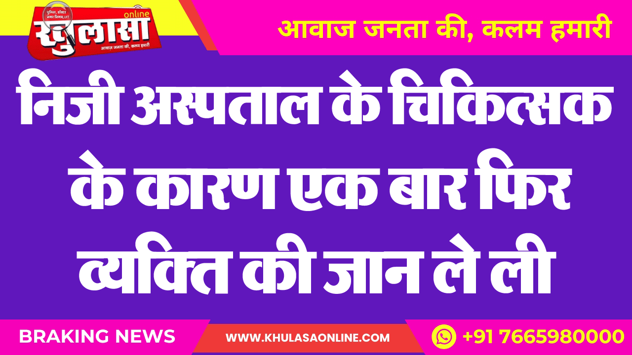 निजी अस्पताल के चिकित्सक के कारण एक बार फिर व्यक्ति की जान ले ली