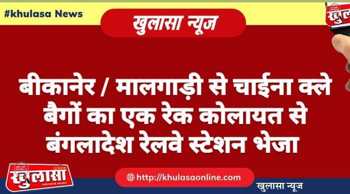 बीकानेर / मालगाड़ी से चाईना क्ले बैगों का एक रेक कोलायत से बंगलादेश रेलवे स्टेशन भेजा