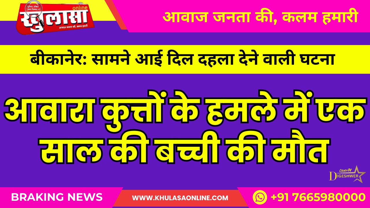बीकानेर। जिले में आवारा कुत्तों का आतंक बढ़ता जा रहा है, जिससे बच्चों की सुरक्षा पर सवाल खड़े हो रहे हैं। छत्तरगढ़ इलाके के 3 केडब्ल्यूएसएम गांव में एक दर्दनाक घटना सामने आई है, जहां घर के बाहर खेल रही एक साल की बच्ची पर आवारा कुत्तों ने हमला कर दिया। कुत्तों ने बच्ची को गंभीर रूप से घायल कर दिया। परिजनों ने तुरंत बच्ची को अस्पताल में भर्ती कराया, लेकिन इलाज के दौरान उसकी मौत हो गई। ग्रामीणों ने प्रशासन से आवारा कुत्तों पर लगाम लगाने और ऐसे हादसों को रोकने के लिए ठोस कदम उठाने की मांग की है।