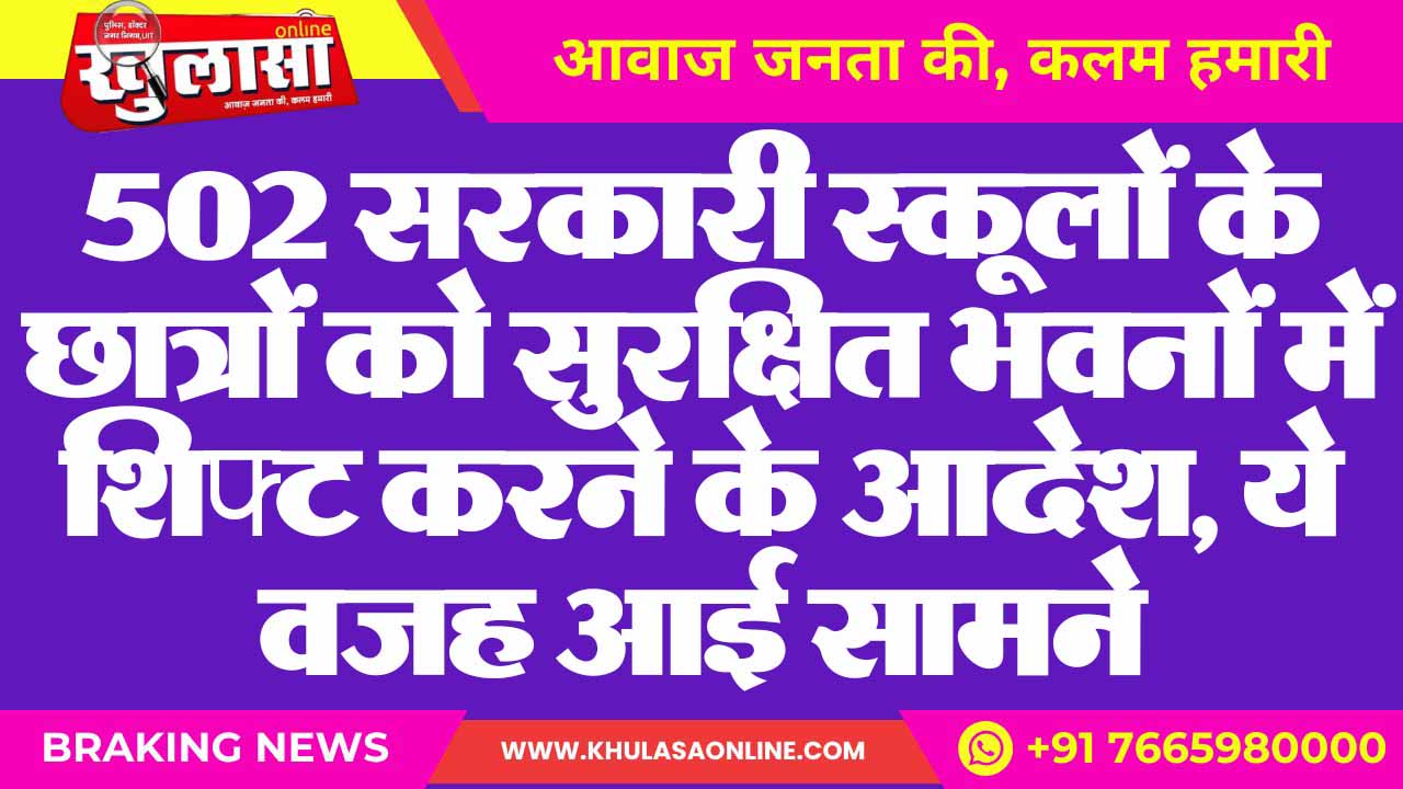 502 सरकारी स्कूलों के छात्रों को सुरक्षित भवनों में शिफ्ट करने के आदेश, ये वजह आई सामने