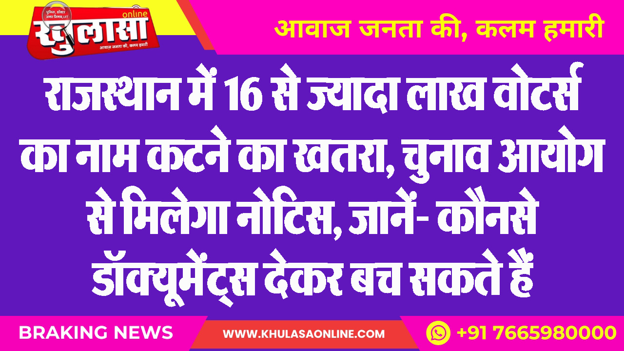 राजस्थान में 16 से ज्यादा लाख वोटर्स का नाम कटने का खतरा, चुनाव आयोग से मिलेगा नोटिस, जानें- कौनसे डॉक्यूमेंट्स देकर बच सकते हैं