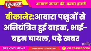 बीकानेर:आवारा पशुओं से अनियंत्रित हुई बाइक, भाई-बहन घायल, पढ़े खबर