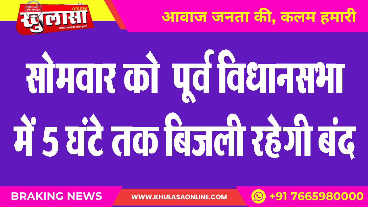 सोमवार को पूर्व विधानसभा में 5 घंटे तक बिजली रहेगी बंद