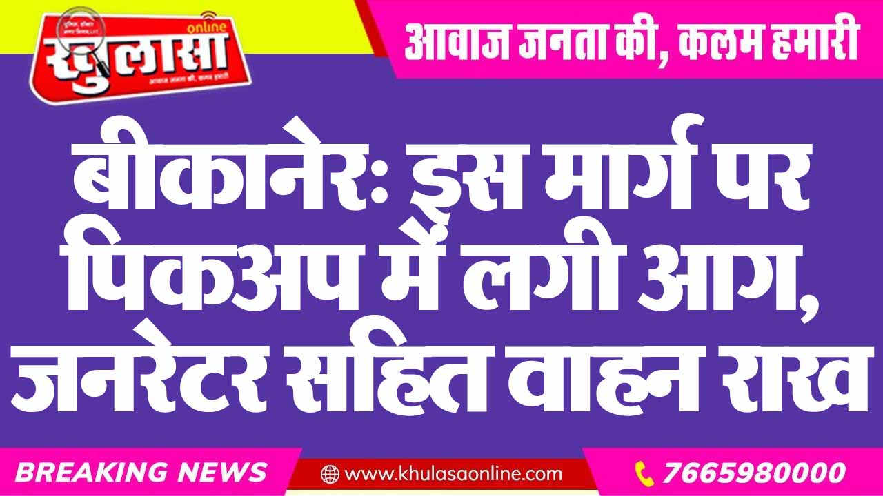बीकानेर: इस मार्ग पर पिकअप में लगी आग, जनरेटर सहित वाहन राख