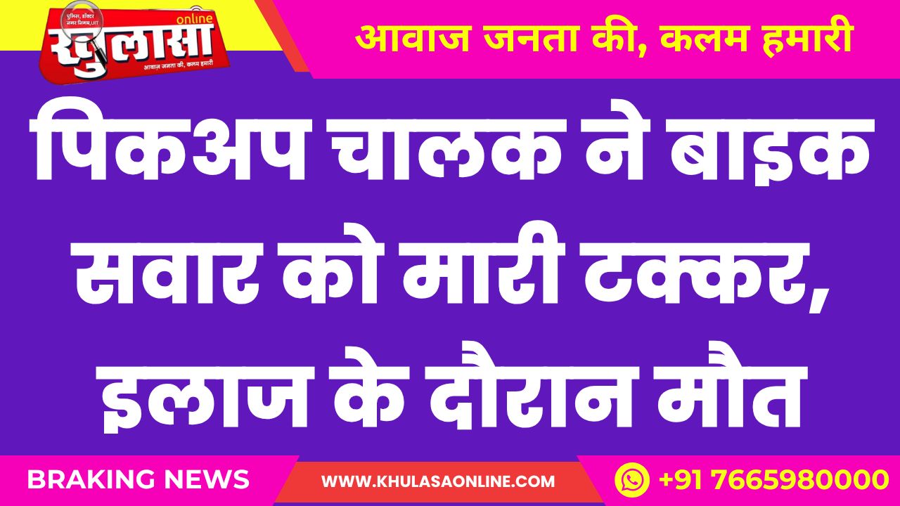 पिकअप चालक ने बाइक सवार को मारी टक्कर, इलाज के दौरान मौत