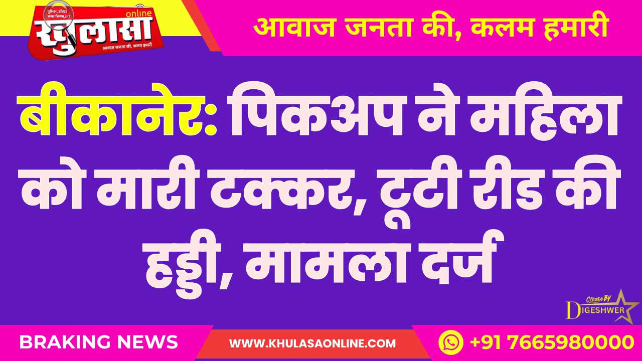 बीकानेर: पिकअप ने महिला को मारी टक्कर, टूटी रीड की हड्डी, मामला दर्ज
