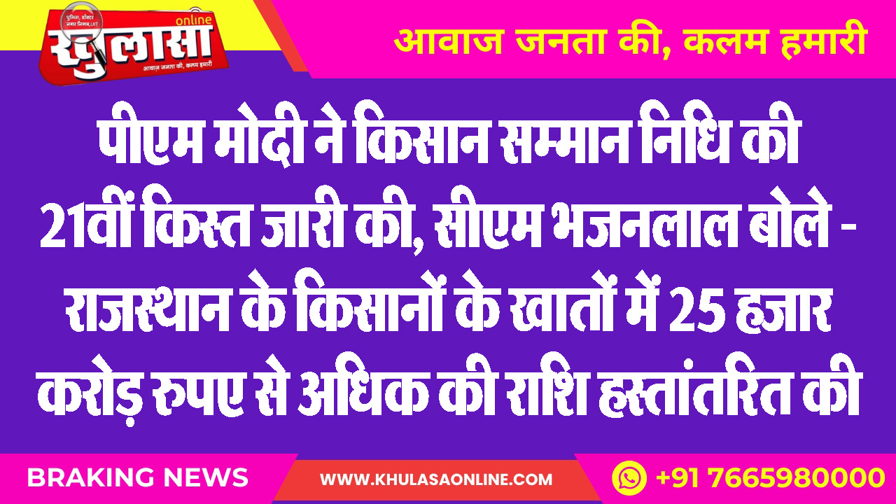 पीएम मोदी ने किसान सम्मान निधि की 21वीं किस्त जारी की, सीएम भजनलाल बोले – राजस्थान के किसानों के खातों में 25 हजार करोड़ रुपए से अधिक की राशि हस्तांतरित की