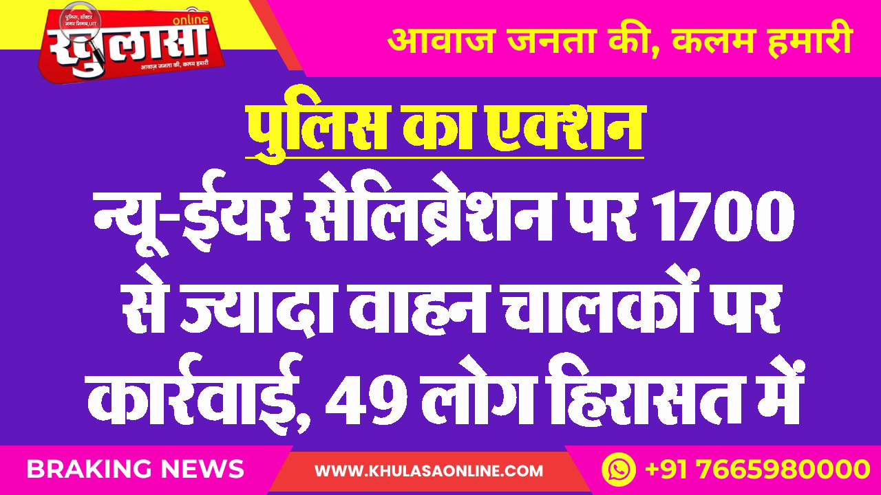 पुलिस का एक्शन : न्यू-ईयर सेलिब्रेशन पर 1700 से ज्यादा वाहन चालकों पर कार्रवाई, 49 लोग हिरासत में