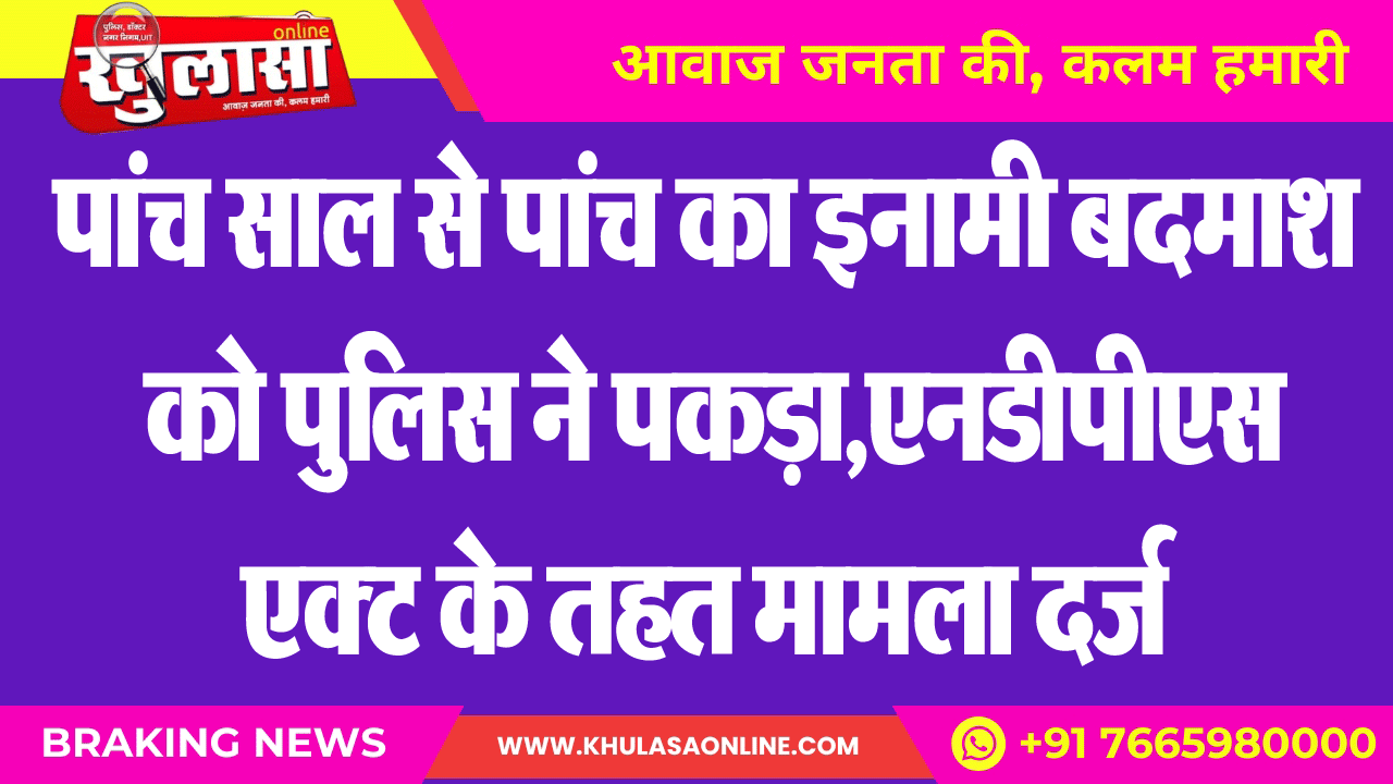 पांच साल से पांच का इनामी बदमाश को पुलिस ने पकड़ा,एनडीपीएस एक्ट के तहत मामला दर्ज