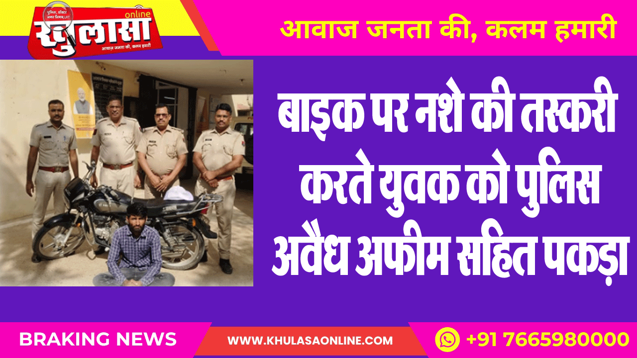 बाइक पर नशे की तस्करी करते युवक को पुलिस अवैध अफीम सहित पकड़ा