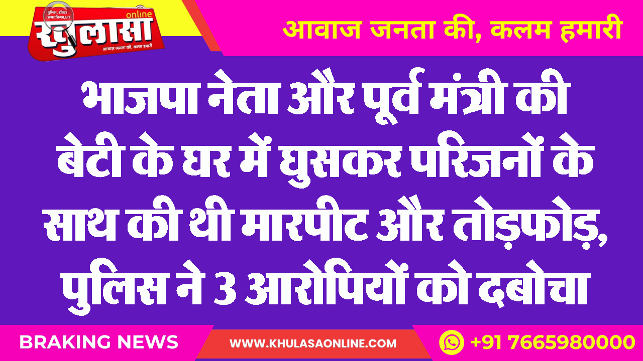 भाजपा नेता और पूर्व मंत्री की बेटी के घर में घुसकर परिजनों के साथ की थी मारपीट और तोडफ़ोड़, पुलिस ने 3 आरोपियों को दबोचा