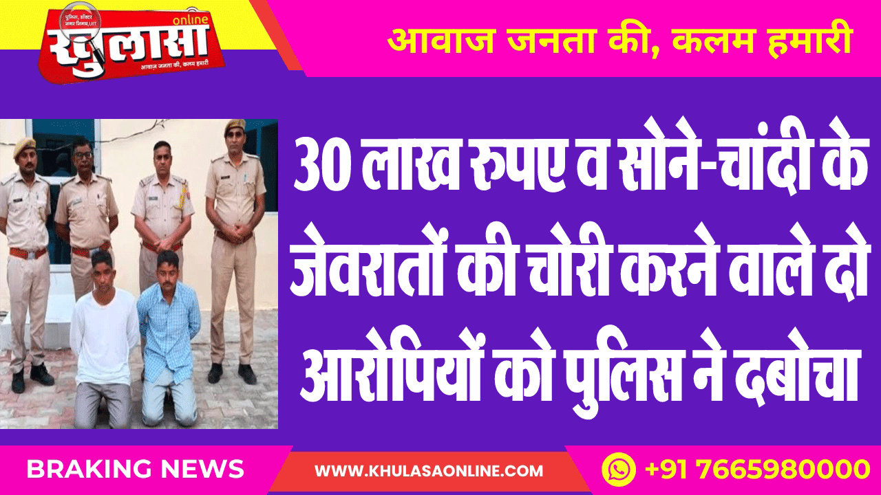 30 लाख रुपए व सोने-चांदी के जेवरातों की चोरी करने वाले दो आरोपियों को पुलिस ने दबोचा