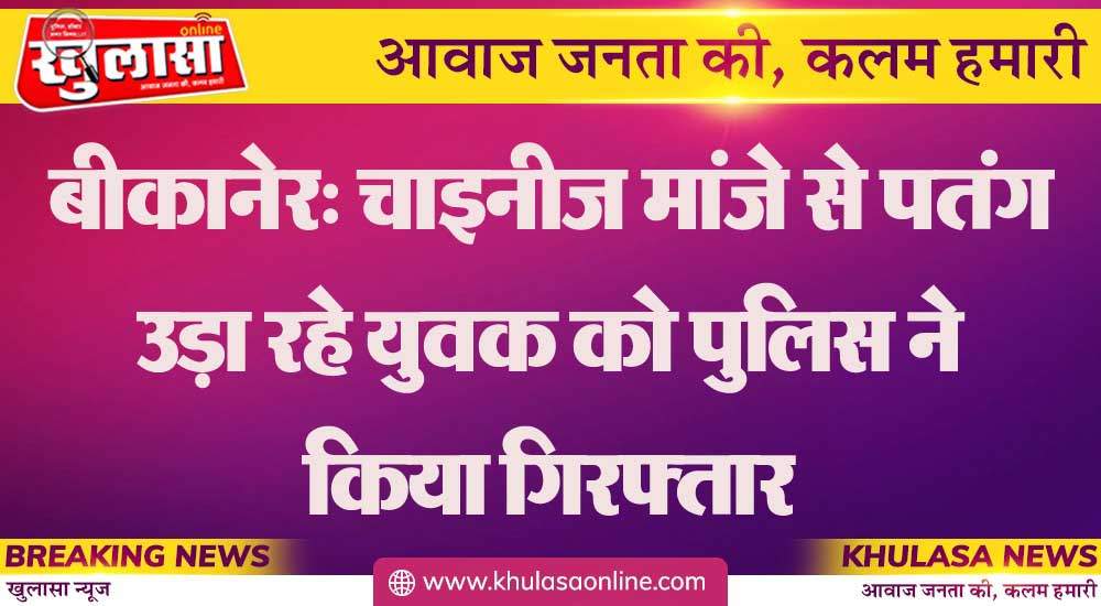 बीकानेर: चाइनीज मांजे से पतंग उड़ा रहे युवक को पुलिस ने किया गिरफ्तार