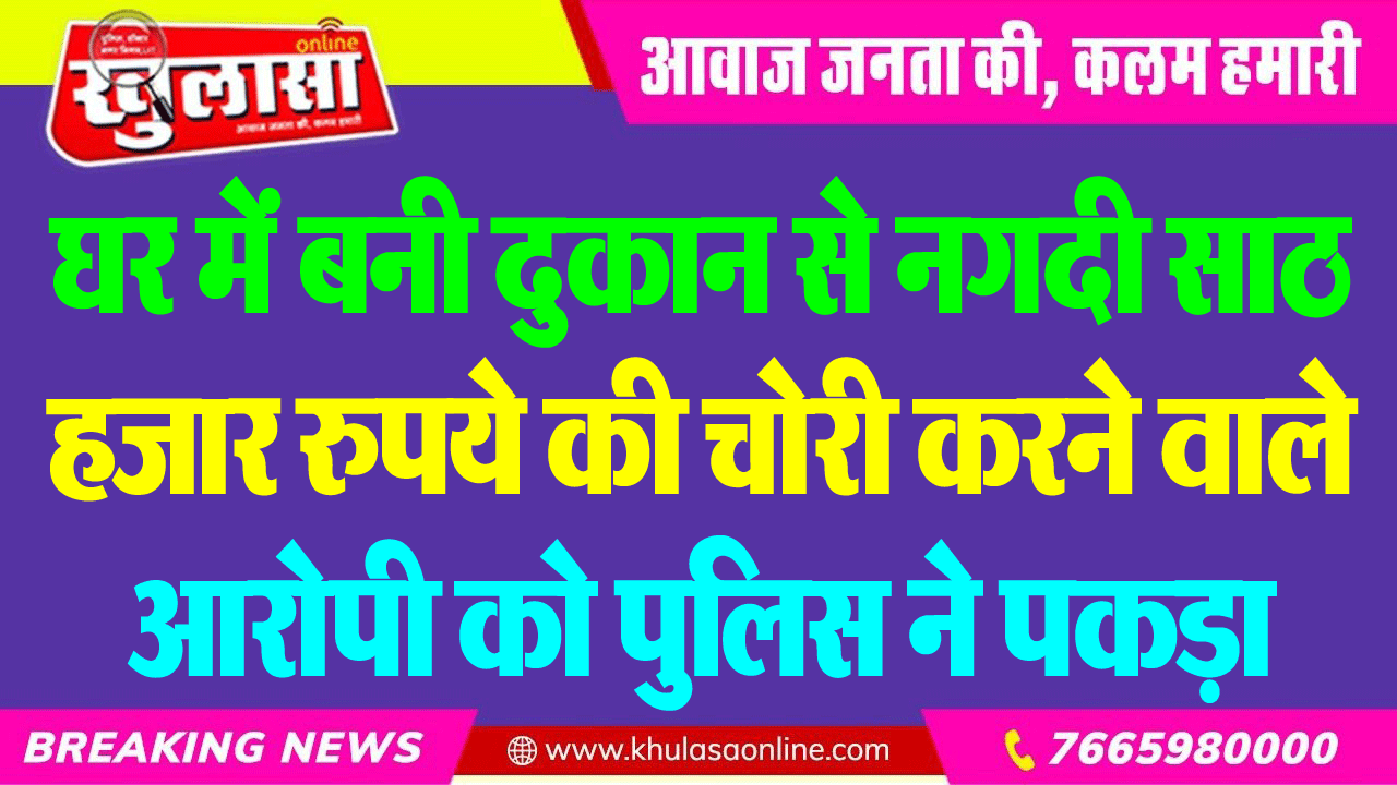 घर में बनी दुकान से नगदी साठ हजार रुपये की चोरी करने वाले आरोपी को पुलिस ने पकड़ा