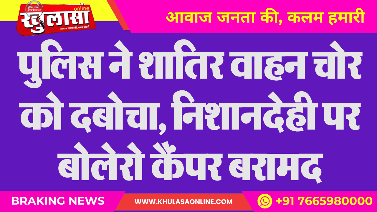 पुलिस ने शातिर वाहन चोर को दबोचा, निशानदेही पर बोलेरो कैंपर बरामद