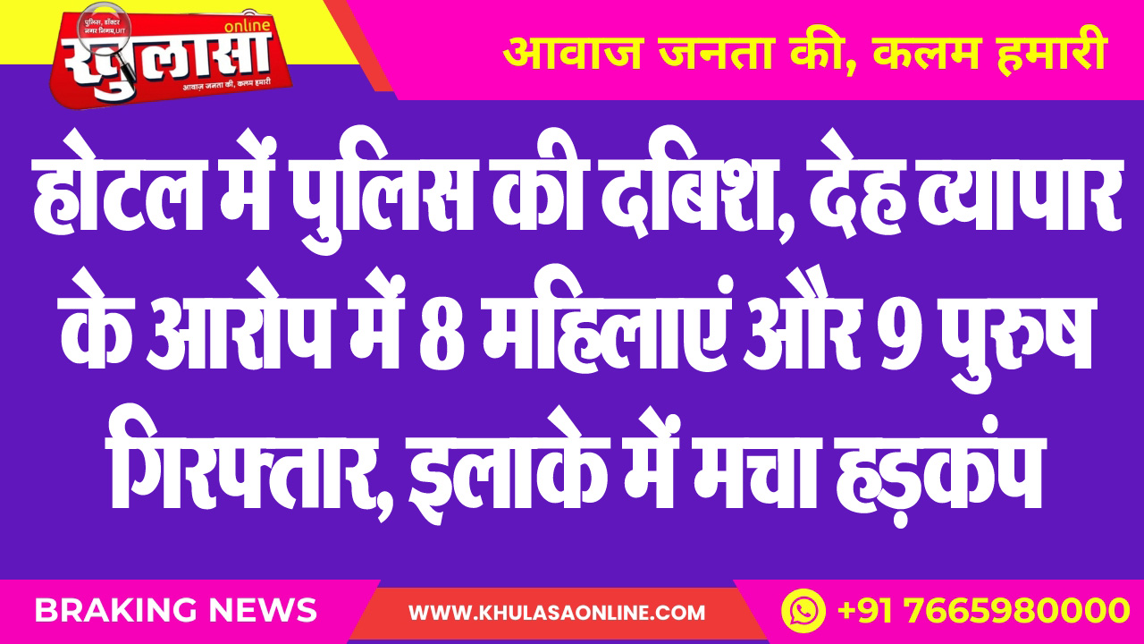 होटल में पुलिस की दबिश, देह व्यापार के आरोप में 8 महिलाएं और 9 पुरुष गिरफ्तार, इलाके में मचा हडक़ंप