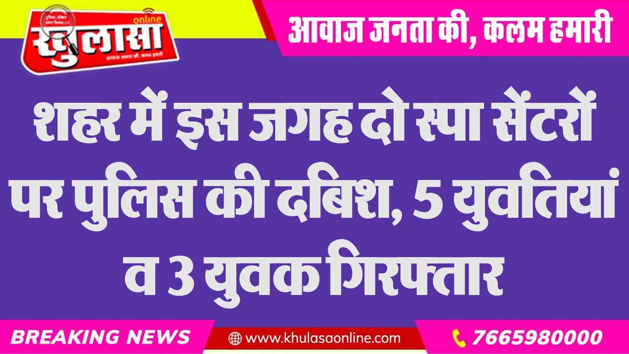 शहर में इस जगह दो स्पा सेंटरों पर पुलिस की दबिश, 5 युवतियां व 3 युवक गिरफ्तार