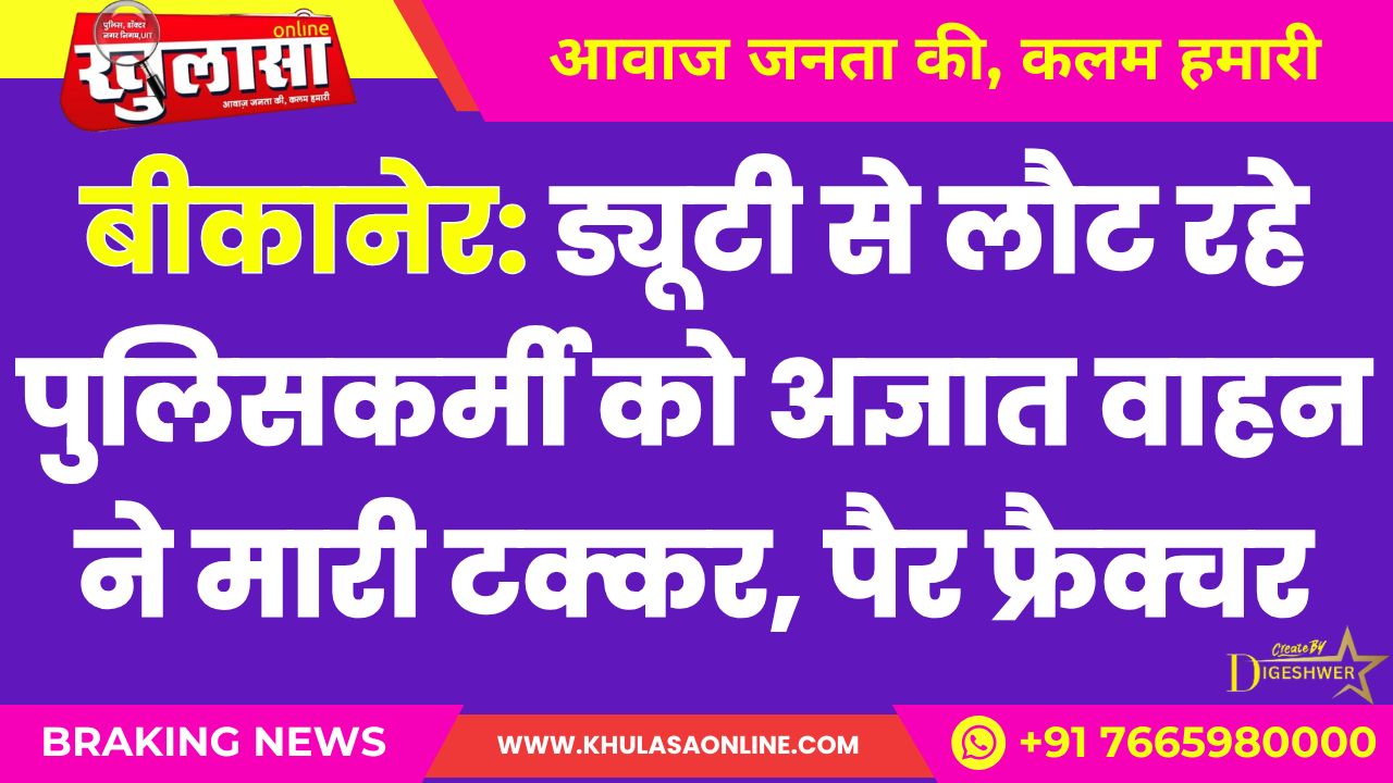 बीकानेर: ड्यूटी से लौट रहे पुलिसकर्मी को अज्ञात वाहन ने मारी टक्कर, पैर फ्रैक्चर